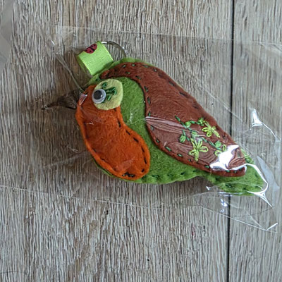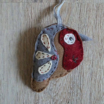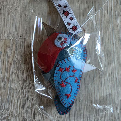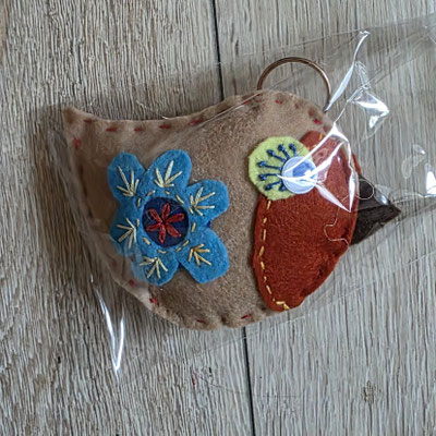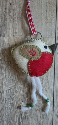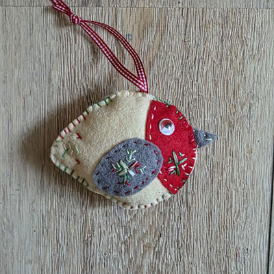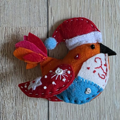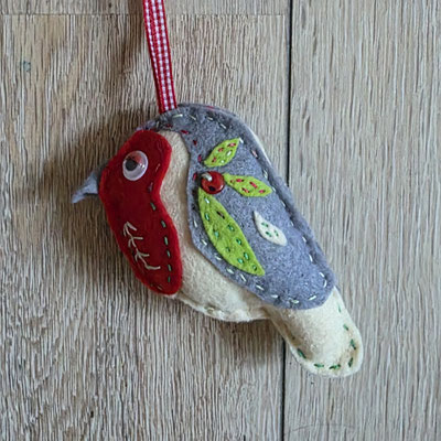 Door middel van borduren, kralen en knoopjes maak je jouw unieke roodborstje.